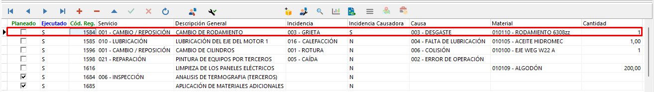 En este informe, podemos ver por equipo la cantidad de incidencias junto con su causa, los materiales utilizados en el servicio para reparar esta incidencia, así como también el MTBF (Mean Time Between Failures) y el MTTR (Mean Time To Repair) medidos.