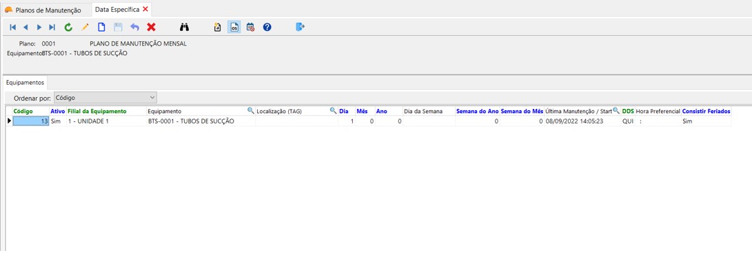 Al acceder, dentro del plan de mantenimiento, a la opción de Fecha Específica, se muestra la información: