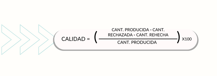 Calidad = Cant. producida – Cant. rechazada – Cant. rehecha / Cant. producida